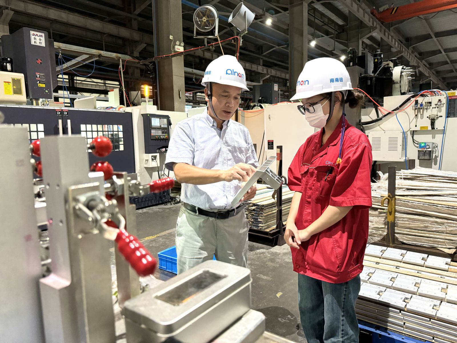 黃相山(左一)在車間指導(dǎo)工作